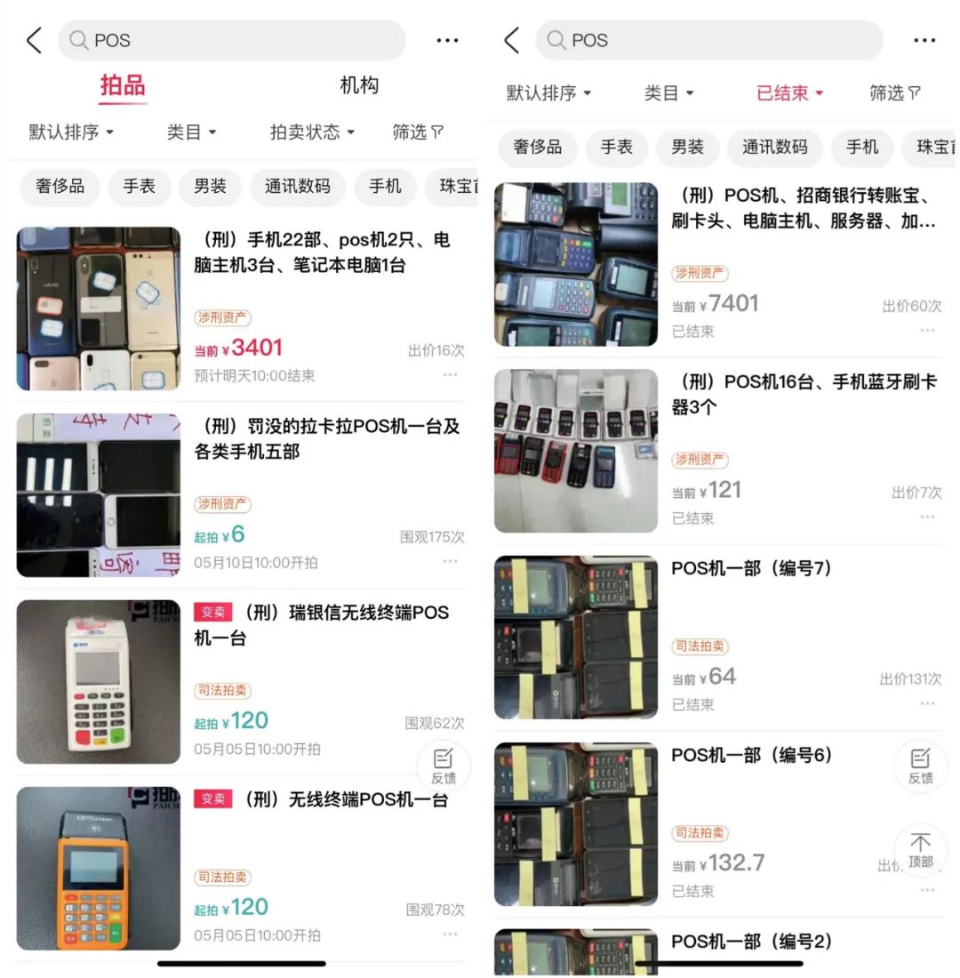 近日,據(jù)知情人士爆料,某寶驚現(xiàn)POS機拍賣,而且還蠻多的,拍賣來源基本都是各地的FY。不少拍賣1元起拍,有些拍賣價格高達數(shù)萬,流拍的也有幾個,拍賣成功的也有不少,而且價格還不低。