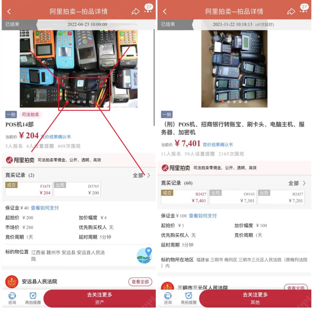 最后,至于這些POS機的來源,有些可能涉及XQ案件,拒付案件,有些可能涉及非法經(jīng)營案件等,但最后這個聯(lián)迪的屬于破產(chǎn)案件。大家關注這些的同時,也要記得遵紀守法,不然哪天或許你手里的機器也被拿來拍賣。